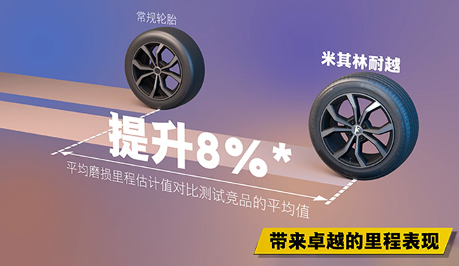 米其林 耐越 ENERGY MILE,平均磨損里程估計值對比測試競品的平均值提升8%*